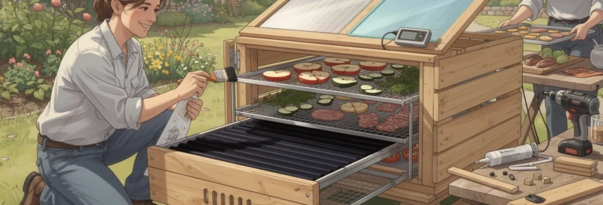 La conservation des récoltes représente un défi ancestral qui retrouve aujourd’hui une actualité brûlante. Face à la surconsommation énergétique des appareils électriques et à la nécessité de réduire notre empreinte carbone, le séchage solaire s’impose comme une solution écologique et économique. Cette méthode de déshydratation exploite l’énergie gratuite du soleil pour préserver fruits, légumes, herbes aromatiques et même certaines viandes. En construisant votre propre séchoir solaire, vous rejoignez un mouvement mondial de résilience alimentaire tout en maîtrisant parfaitement le processus de conservation. Cette installation low-tech combine ingénieusement les principes thermiques, la circulation d’air naturelle et des matériaux accessibles pour créer un outil pratique capable de fonctionner durant des décennies. Vous découvrirez qu’avec quelques planches, une vitre et du savoir-faire, il est possible de transformer vos surplus de récolte en provisions nutritives pour l’année entière.