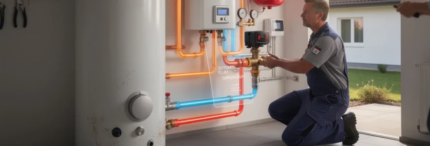 L’installation en série nécessite une modification du circuit hydraulique existant. L’arrivée d’eau froide du cumulus doit être déconnectée du réseau principal pour être raccordée à la sortie du ballon solaire. Cette modification implique généralement l’ajout de vannes d’isolement et la création de nouvelles connexions étanches. La pression d’alimentation doit être suffisante pour traverser les deux ballons successivement sans compromettre le débit aux points de puisage.
